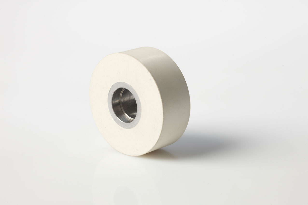 Die Bimatic Rolle hat einen Stahlkern und wird mit der weissen Gummimischung von 60±5 ShA gummiert. Der Gummi hat einen sehr guten Griff, hinterlässt keine Spuren und wird abriebfest.