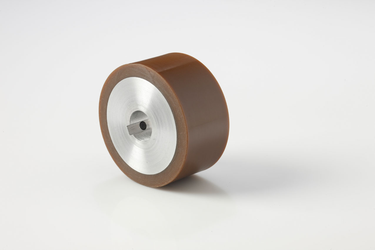Die Rolle hat einen Alukern und wird mit der braunen Gummimischung von 70±5 ShA gummiert. Der Gummi hat einen guten Griff, hinterlässt keine Spuren und wird abriebfest.