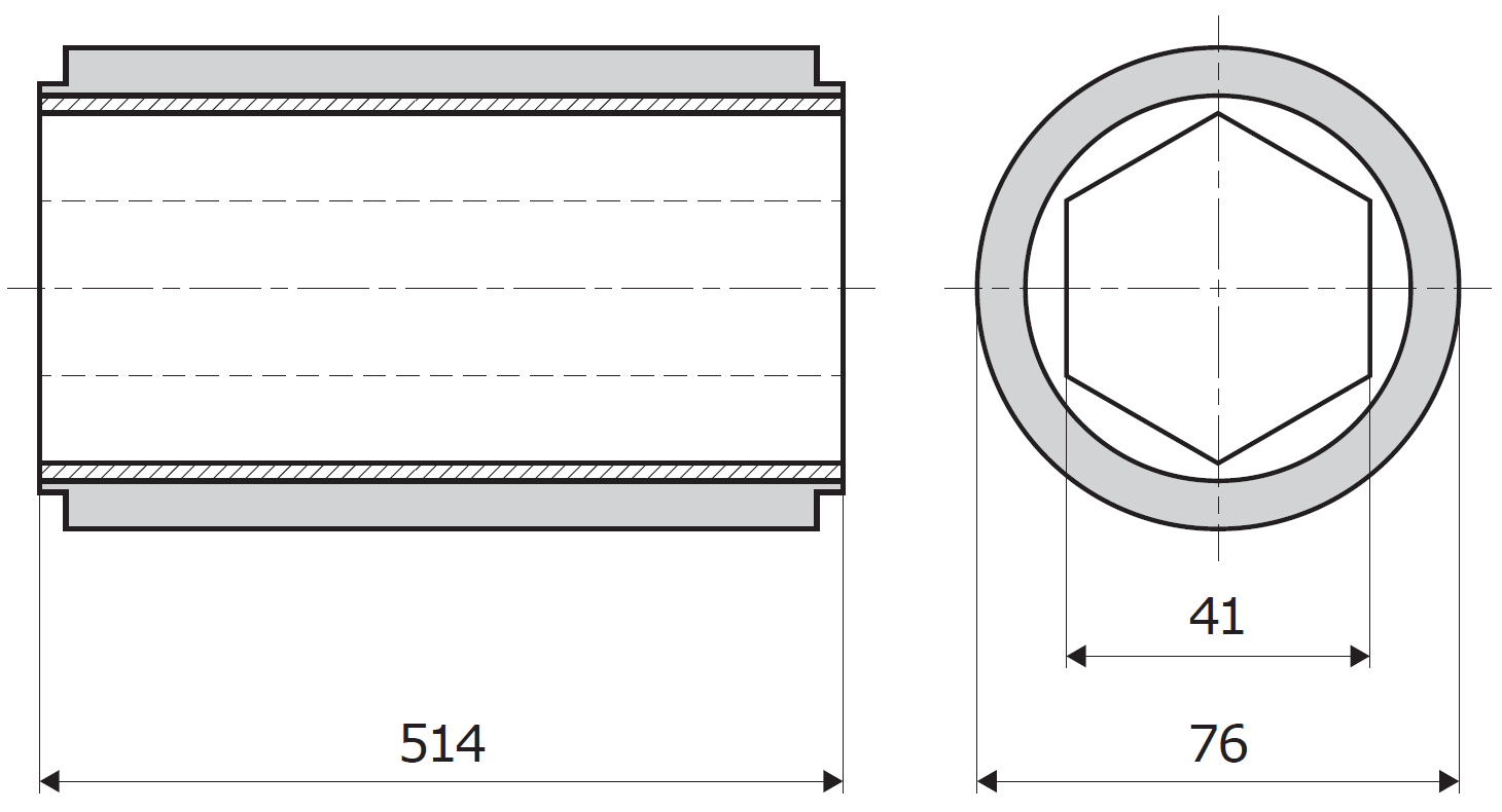 Die Walze hat den Kern aus Aluminium, mit der 6-Kant Bohrung und wird mit der schwarzen Gummimischung von 70±5 ShA gummiert. Der Gummi wird abriebfest und kann die Spuren auf dem Material hinterlassen.