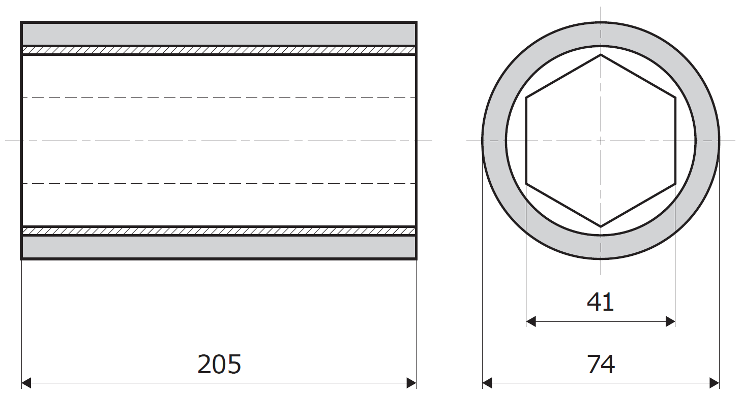 Die Rolle wird zum Einbau in verschiedene, eher ältere Martin Maschinen geeignet. Als Standardprogramm gibt es auch 74-205 Martin Rollen mit der weissen Gummimischung von 60±5 ShA und mit der schwarzen Gummimischung von 70±5 ShA.