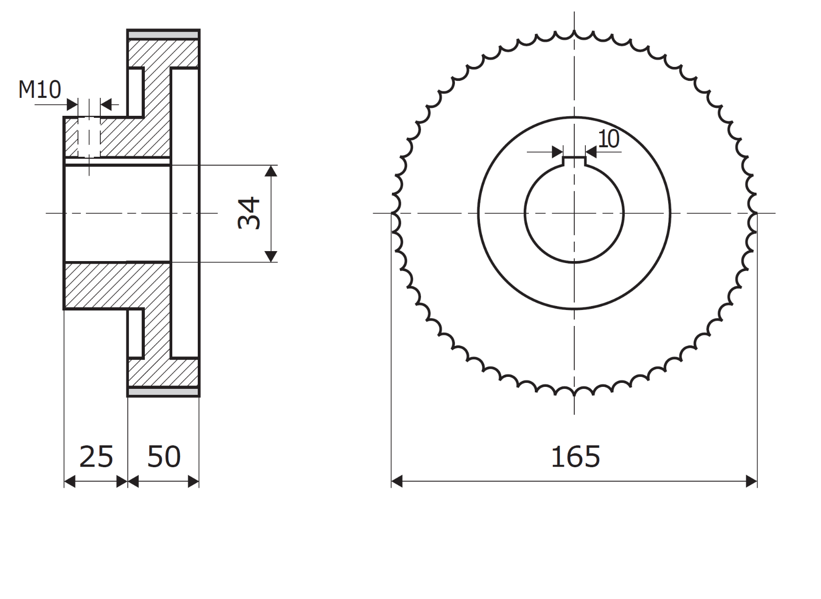 – das Zahnprofil (A, B, C, D, E, F, G, H, X – wenn Sie das Zahnprofil X auswählen, wählen Sie die Richtung der Verzahnung und das Material nicht, da es nur als verchromt zur Verfügung steht)