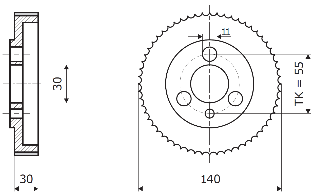 • Zahnprofil (A, B, C, D, E, F, G, H, X – beim Profil X wählt der Kunde weder die Richtung der Verzahnung und das Material nicht, weil es nur als verchromt zur Verfügung steht)