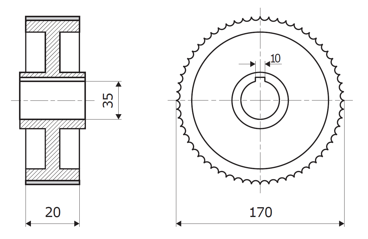 L1 (Verzahnungsbreite) = 20