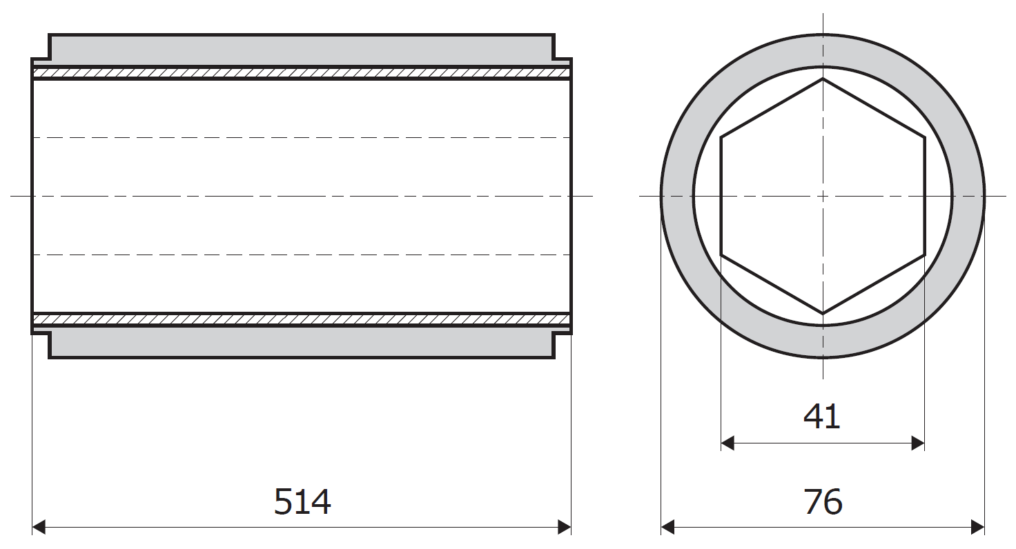 The roller is suitable for installation in various Kölle machines. Kölle 76-644 rollers with a gray rubber compound of 65±5 ShA and a black rubber compound of 70±5 ShA are also available as standard.