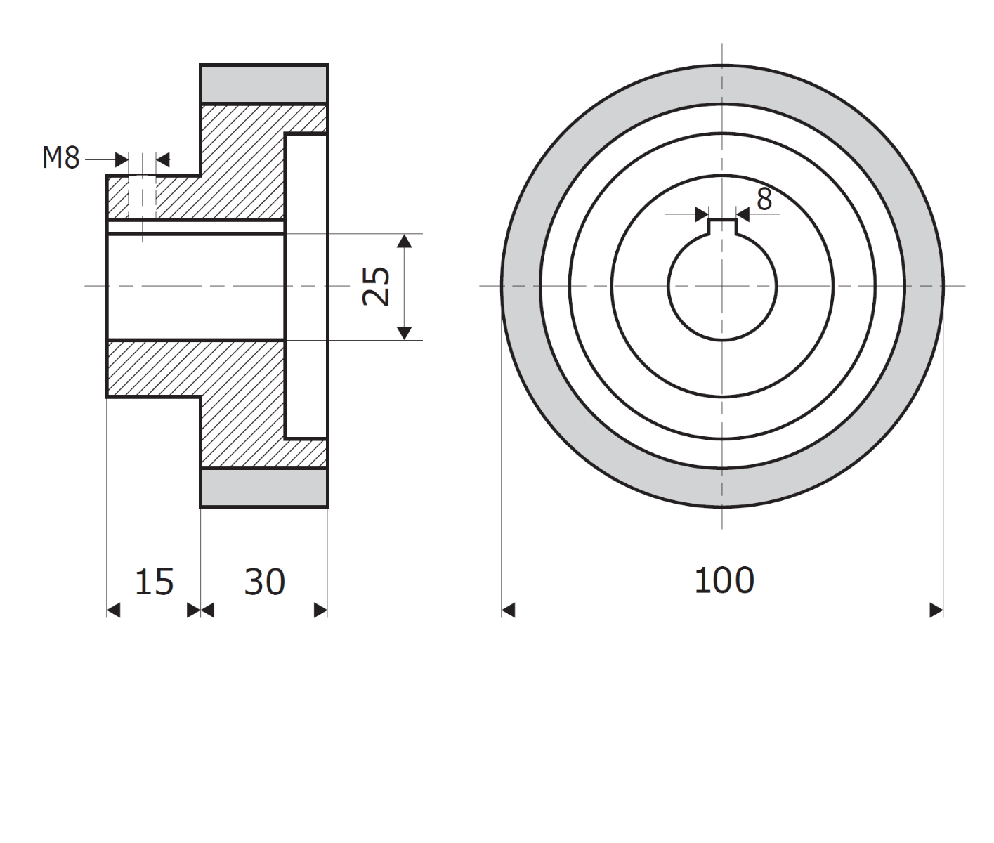 The roller has an aluminum core and is coated with a white rubber compound of 60±5 ShA. The rubber provides excellent grip and leaves no marks on the wood. They are suitable for installation in various SCM machines.