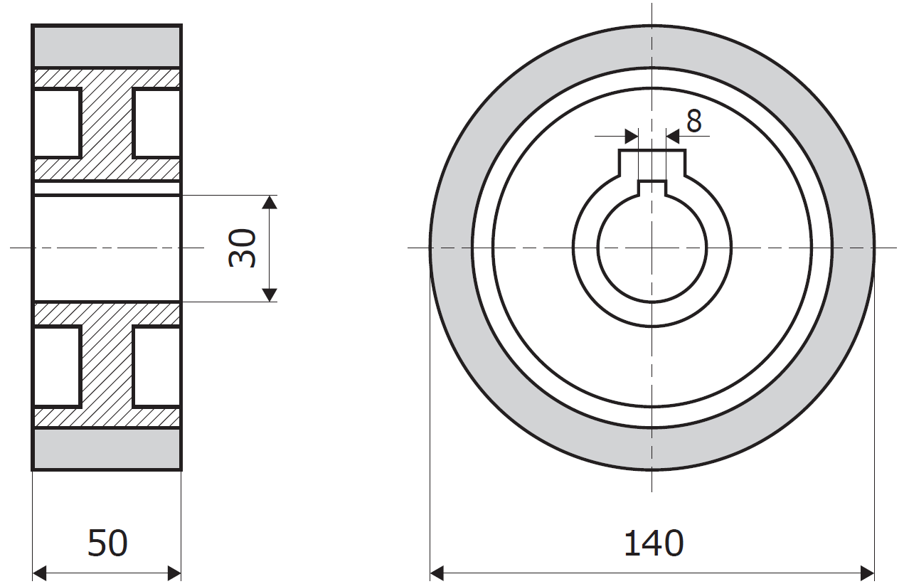 Weinig rollers are suitable for installation in various older Weinig four-sided planing machines. As part of our standard program, there are also Weinig rollers in size 140-50-30-8 with the white rubber compound of 60±5 ShA and with the grey rubber compound of 65±5 ShA.