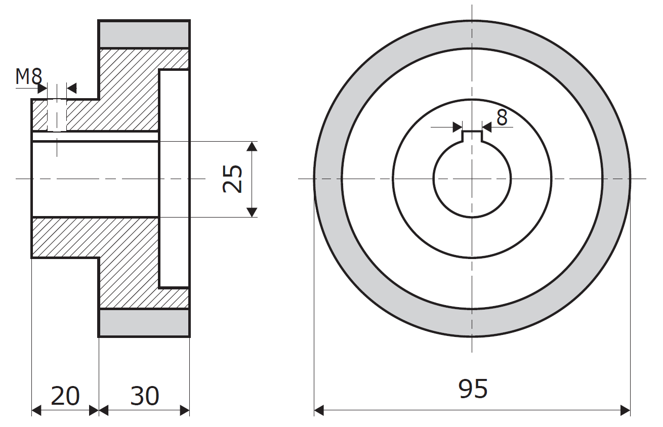 D1 (diameter of roller) = 95