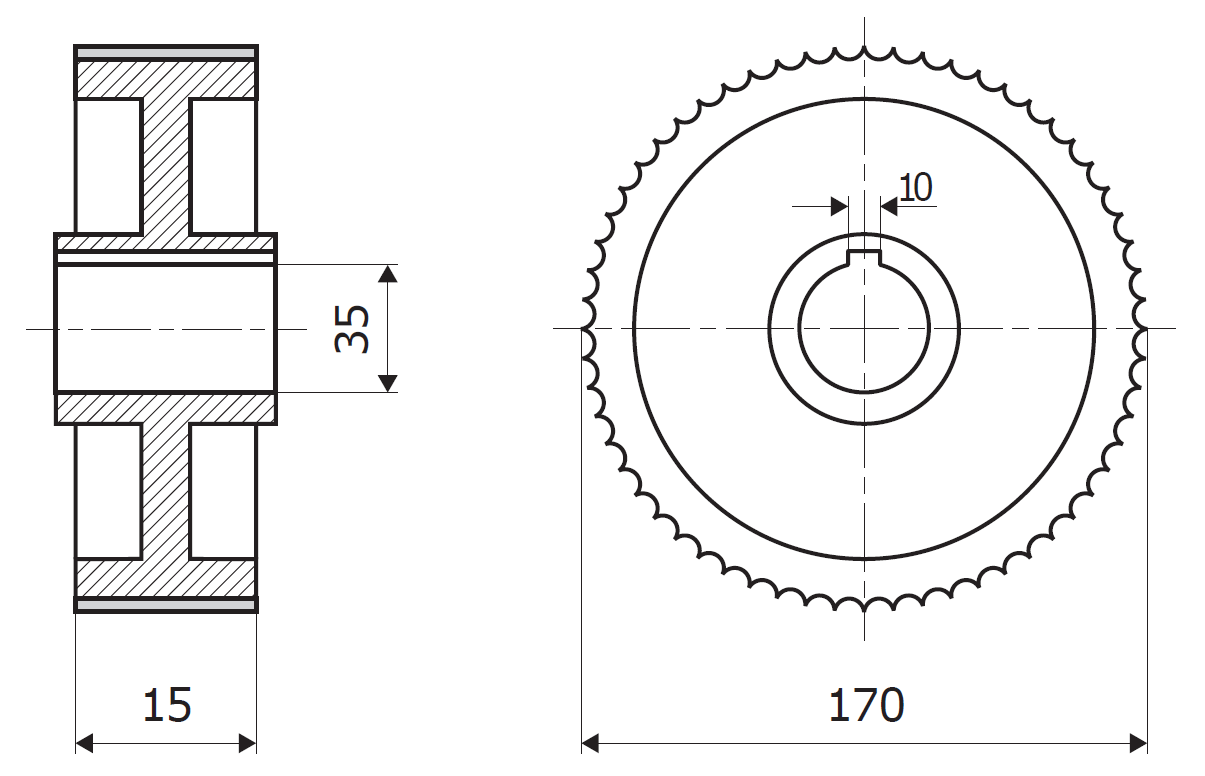 • the direction of the teeth (straight or helical)