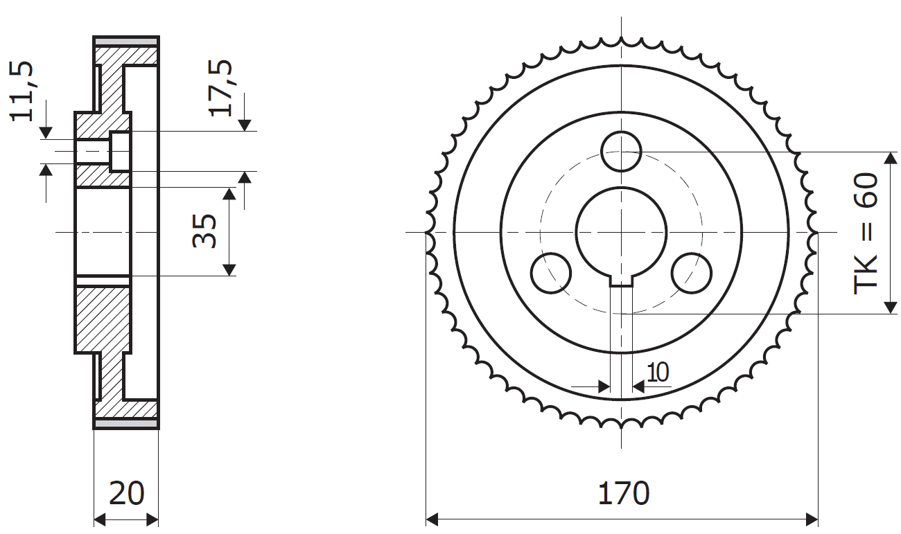 • the tooth profile (A, B, C, D, E, F, G, H, X – when choosing profile X, the customer does not select the direction of the teeth or the material, as it is only available in the chrome-plated version)
