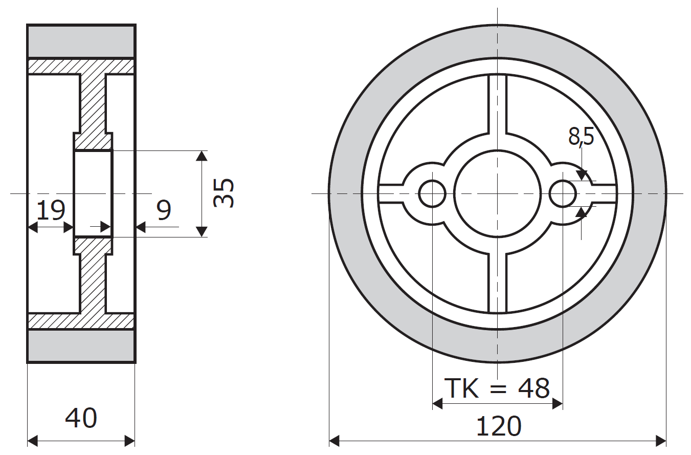 Primerni so za montažo na različne podajalne naprave. Po želji jih gumiramo tudi z drugo gumijasto zmesjo (pošljite povpraševanje)