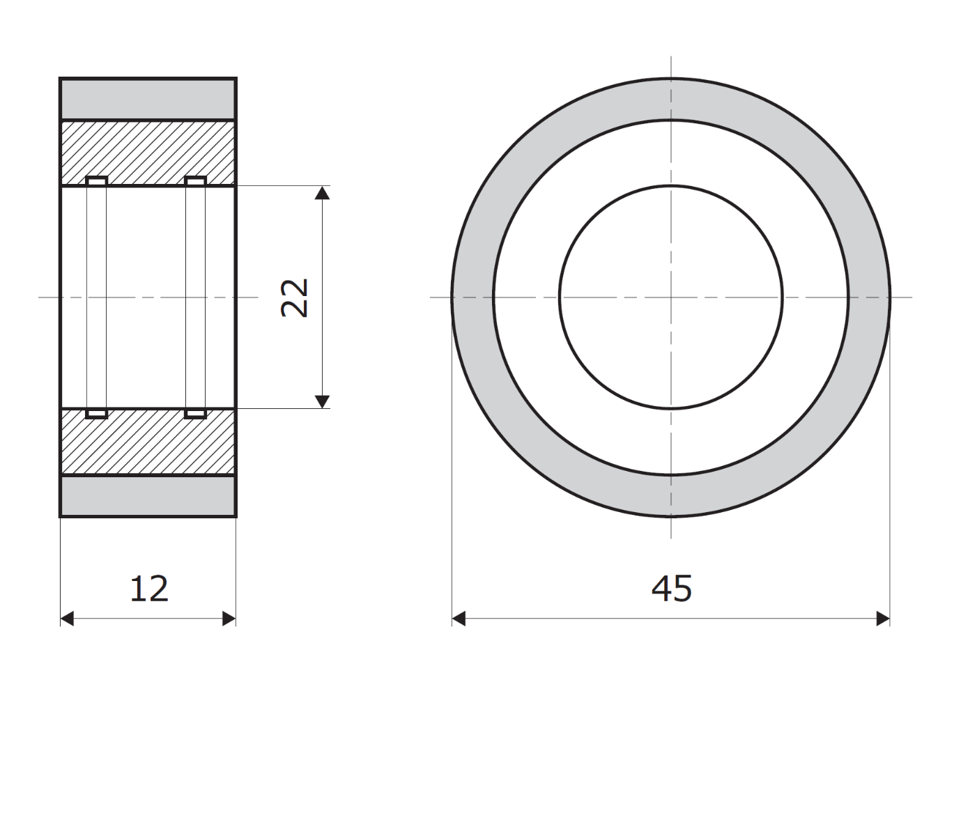 Kolut ima jekleno jedro z ležajnim mestom (brez ležaja in varovalnega obroča), gumiran pa je z rjavo gumo trdote 70±5 ShA, ki je odporna na obrabo in ne pušča sledi. Koluti so primerni za montažo na različne naprave.