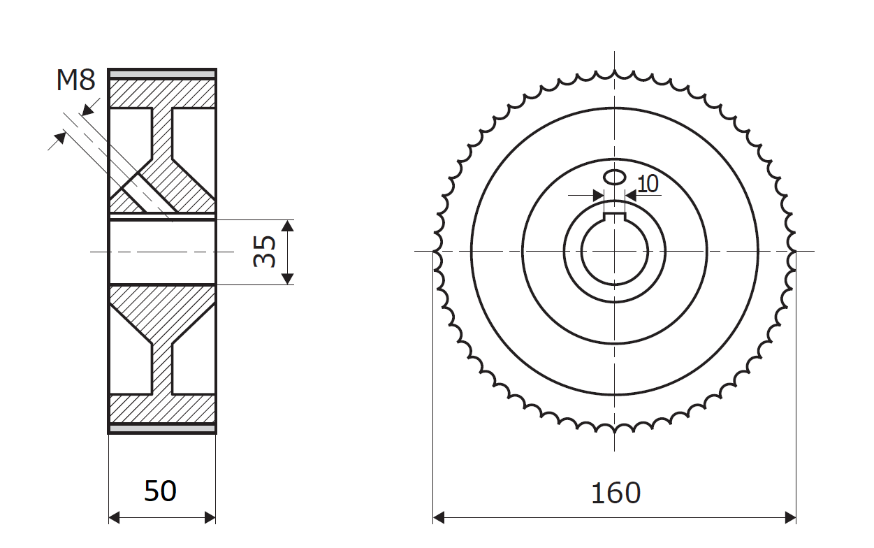 Zobati kolut je narejen iz poboljšanega jekla, katerega kalimo in naknadno kromamo, za boljšo trdnost.