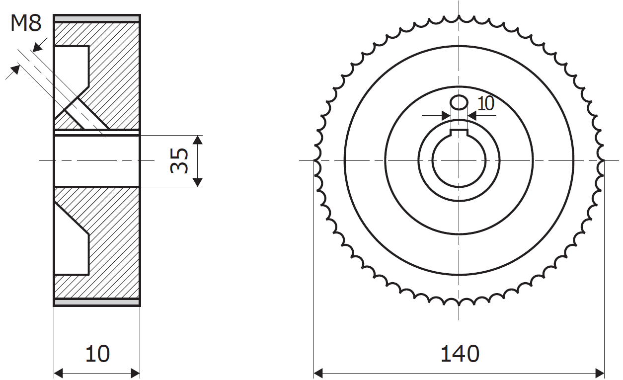 Zobati kolut je narejen iz poboljšanega jekla, katerega kalimo in naknadno kromamo, za boljšo trdnost.